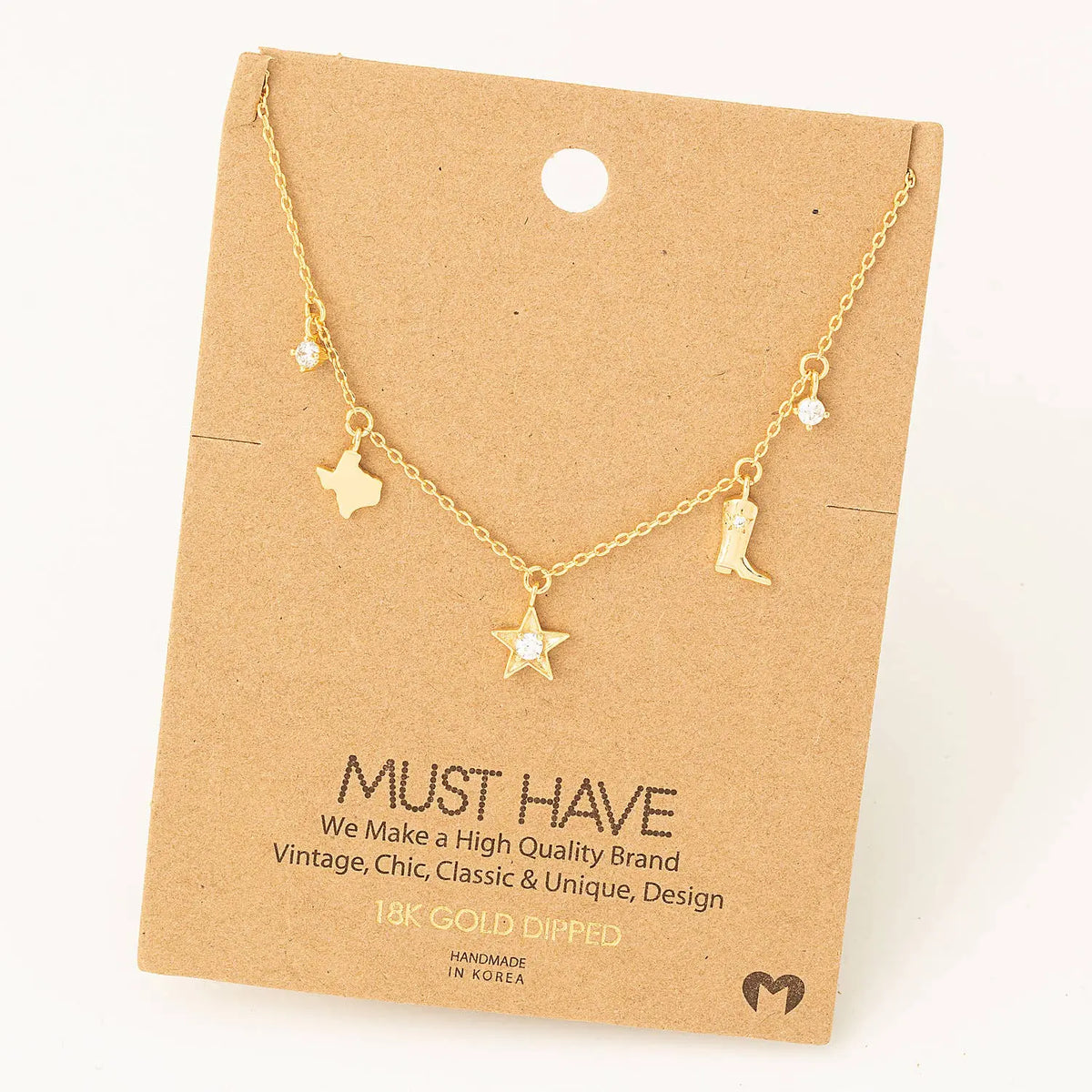 TEXAS STAR BOOTS NECKLACE-GOLD