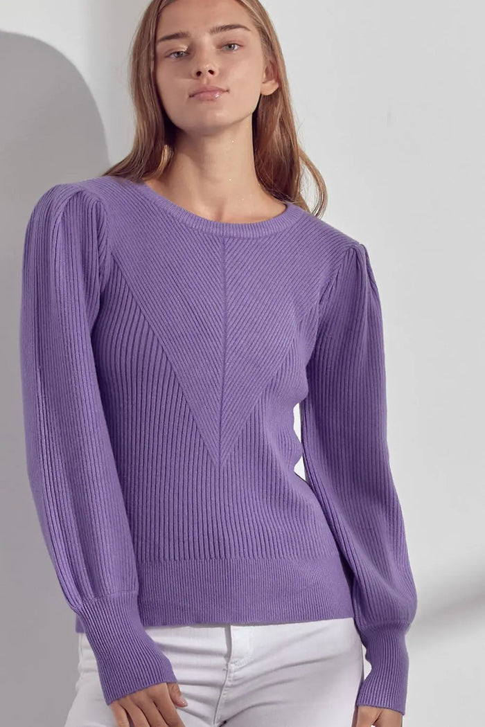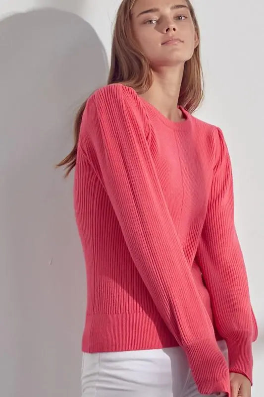 RIBBED CREW NECK LONG SLEEVE TOP