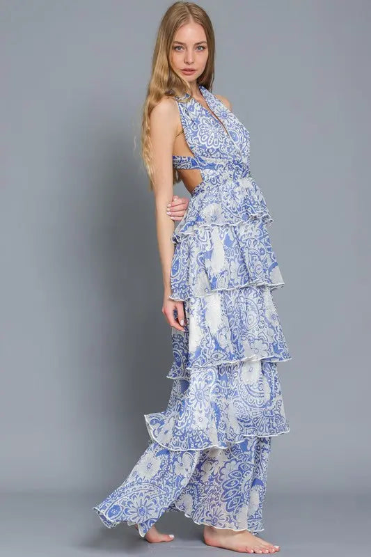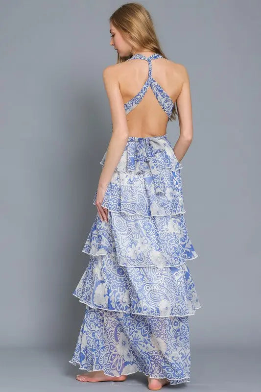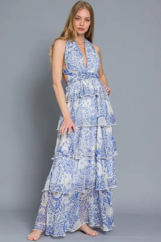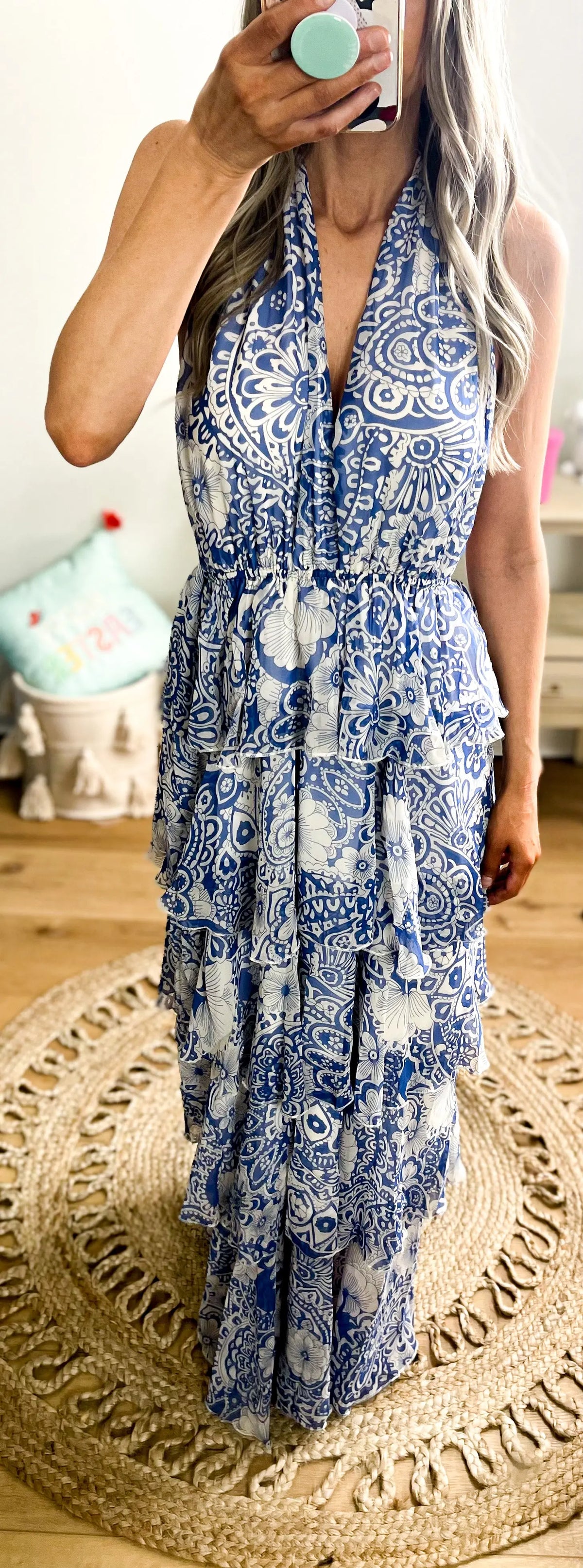 WHIMSICAL DREAM HALTER TIERED MAXI DRESS