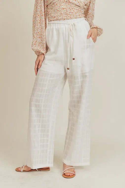 HAMPTON STAY SHEER SMOCKED PANTS - WHITE