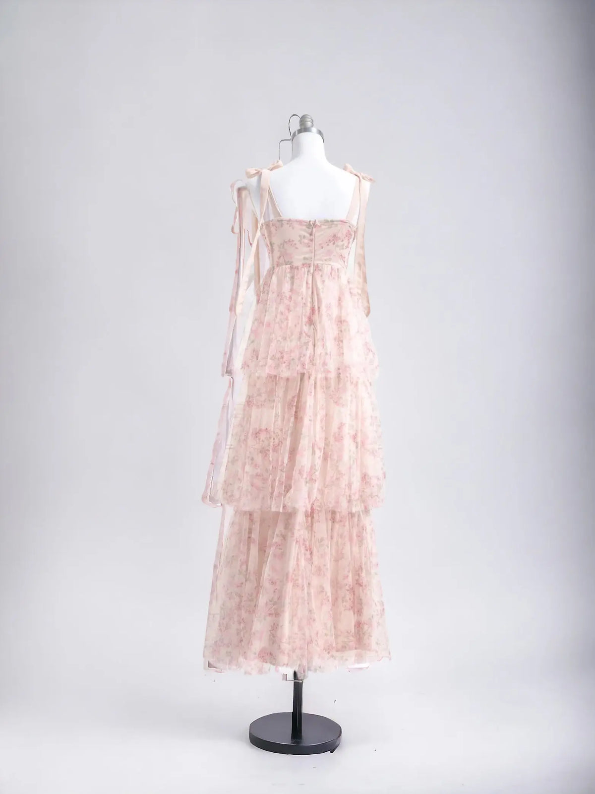 Introducing the BLISSFULLY BLUSH FLORAL TIE-STRAP BUSTIER MAXI DRESS