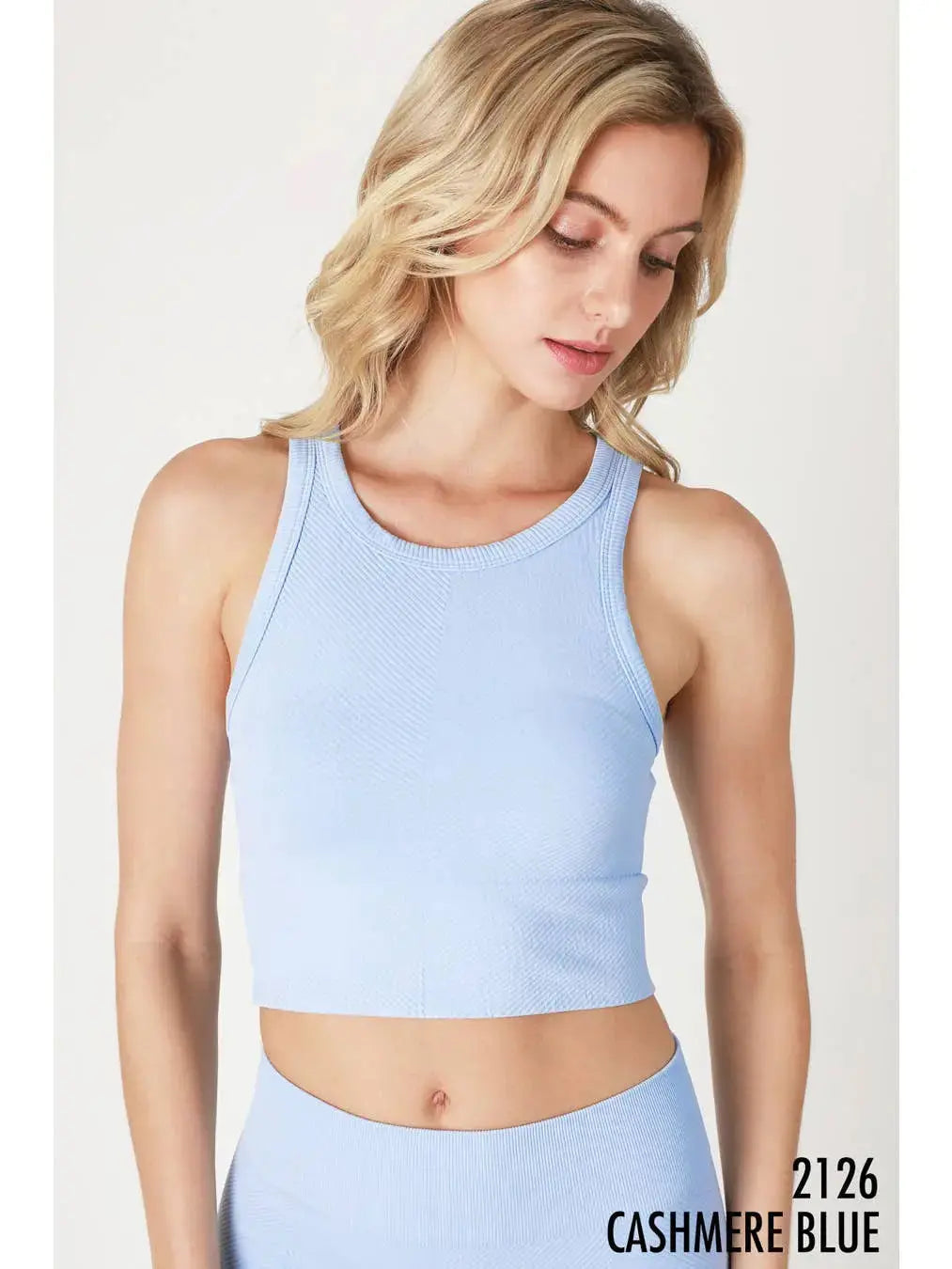 CHEVRON HIGHNECK CROP TOP-CASHMERE BLUE