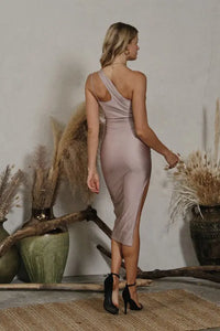 SPEECHLESS ONE SHOULDER CUT OUT SLIP MIDI DRESS