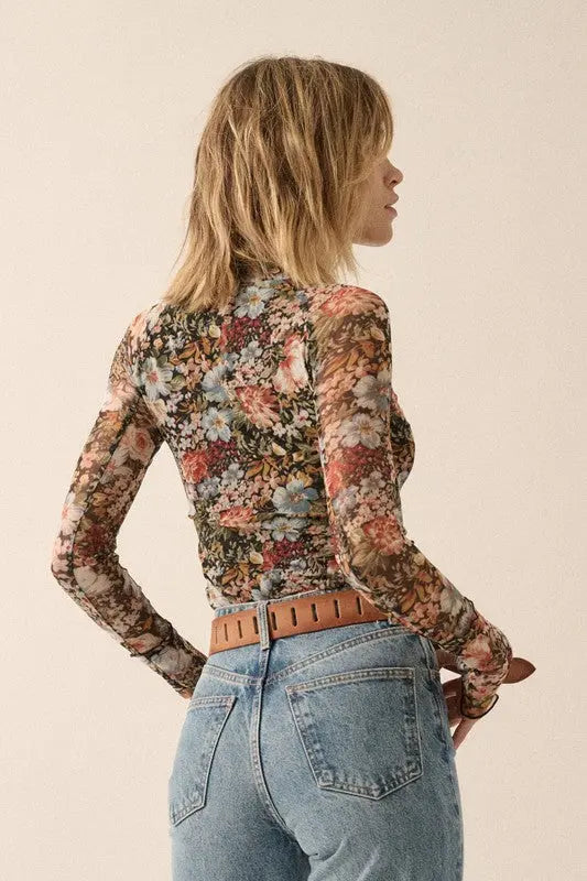 FLORAL MESH LONG SLEEVE TOP: Perfect Blend of Style and Comfort