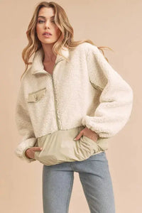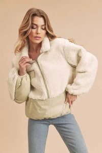 Part of our essential collection, this plush faux-fur half-zip pullover featuring fleece and nylon contrast trim is a timeless piece for your cold-weather wardrobe.