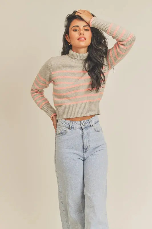 OKAY WITH ME STRIPED TURTLENECK SWEATER