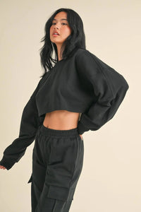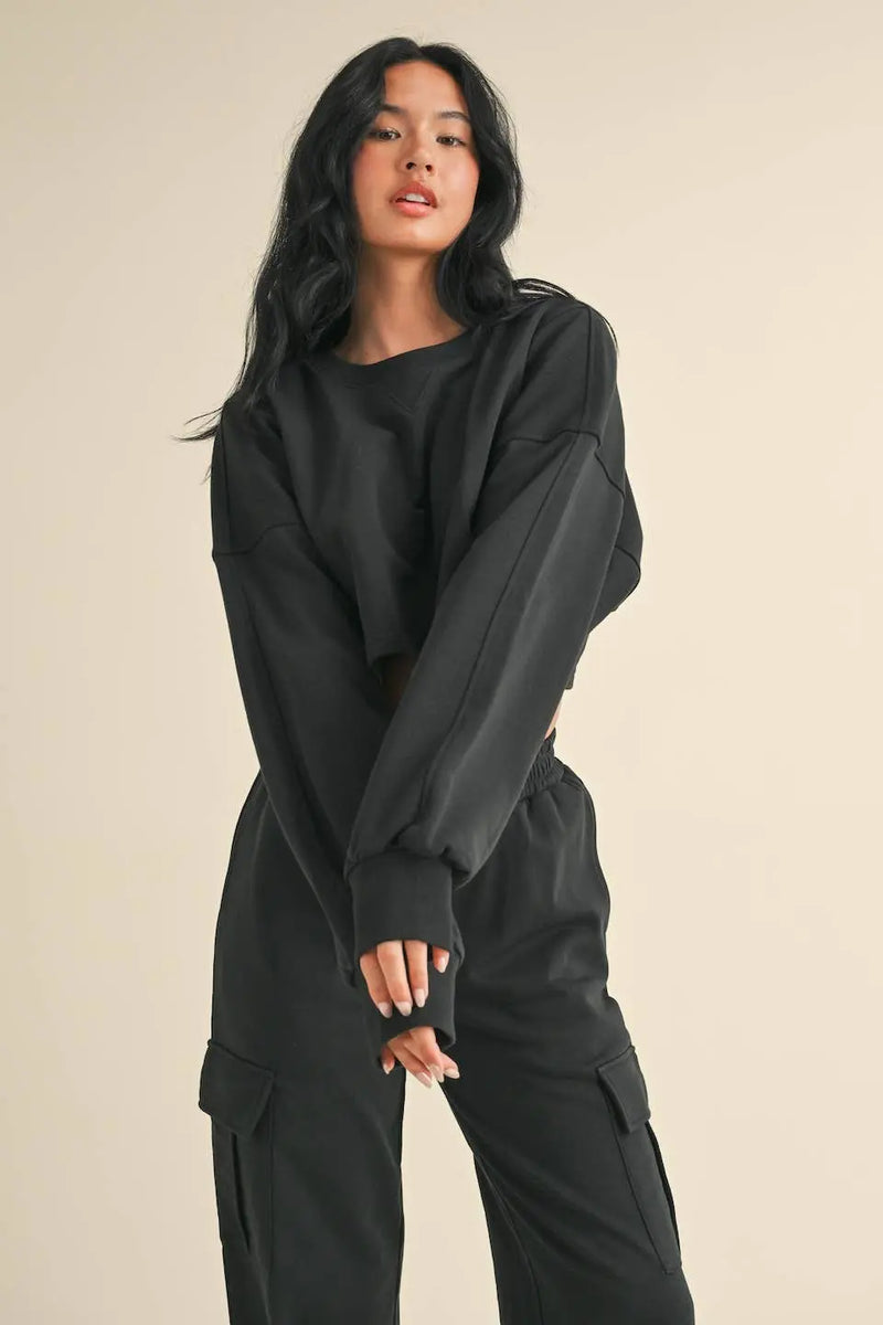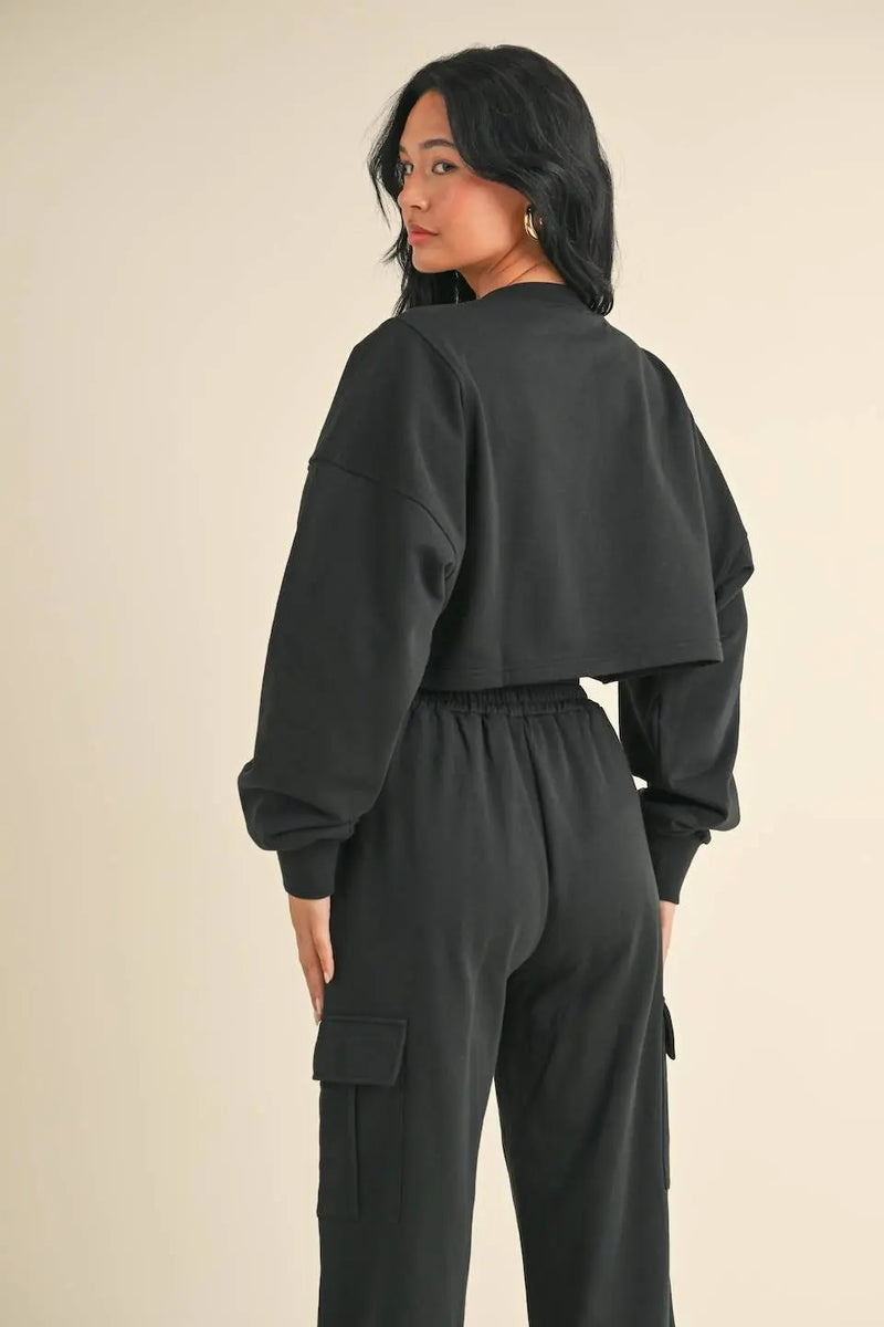 OVERSIZED CROP SWEATSHIRT AND WIDE LEG CARGO SWEATPANTS