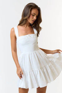 Get ready to rock the ruffled square neck babydoll dress in classic white. Perfect for those who like to keep things fun and playful (and fashionable, of course)!