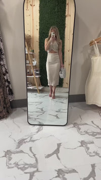 Seaside Rib Cut Out Midi Dress-Taupe Details: