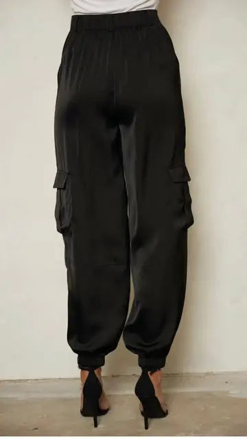 Equipped with functional cargo pockets, these joggers are as practical as they are stylish. You can store your essentials like your phone or wallet, which is perfect when you’re on the go. Additionally, the sleek design maintains a polished look, so you’ll always appear chic, even while being functional. Therefore, you can confidently wear the SLEEK MOVES SATIN CARGO JOGGERS for any occasion!