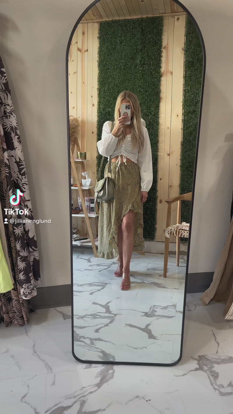 You will have everyone wrapped around your finger when you wear our Blossom High Low Floral Maxi Skirt. Pair it with our Taking Over Scooped Neck Top and Sasha Sandals to complete the perfect look!