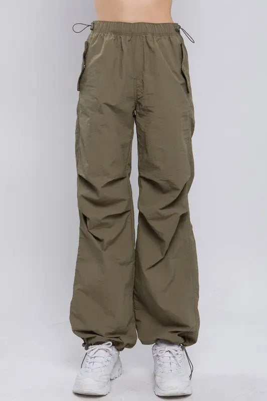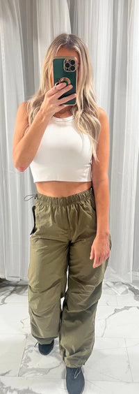 CROSS WAIST BAND WIDE LEGGINGS-BROWN