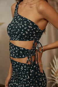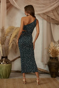 REACH FOR THE STARS ONE SHOULDER CUT OUT MIDI DRESS