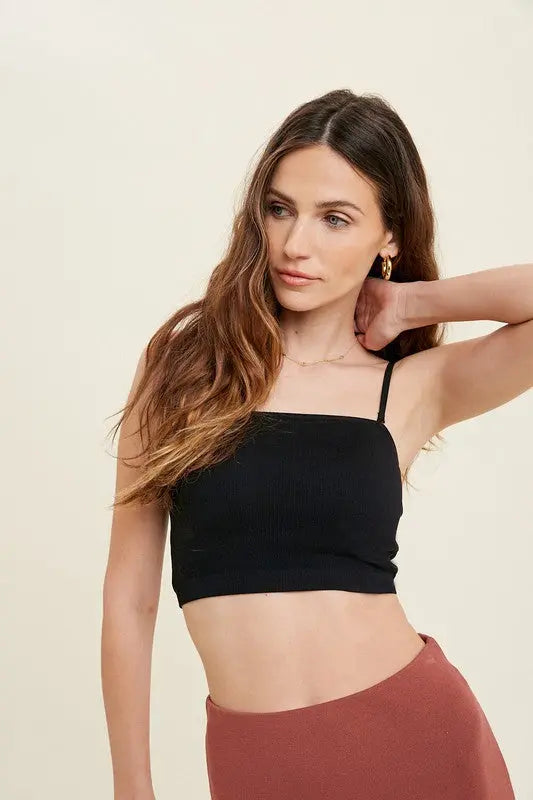 Ribbed Knit Adjustable Bandeau-Black Details: