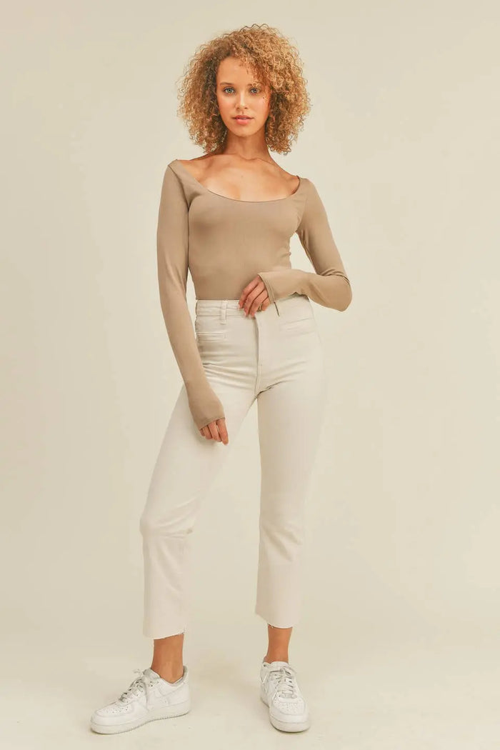 SAND LONG SLEEVE SCOOP NECK SEAMLESS BODYSUIT