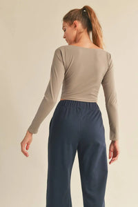 FITTED LONG SLEEVE SEAMLESS TOP-TAUPE