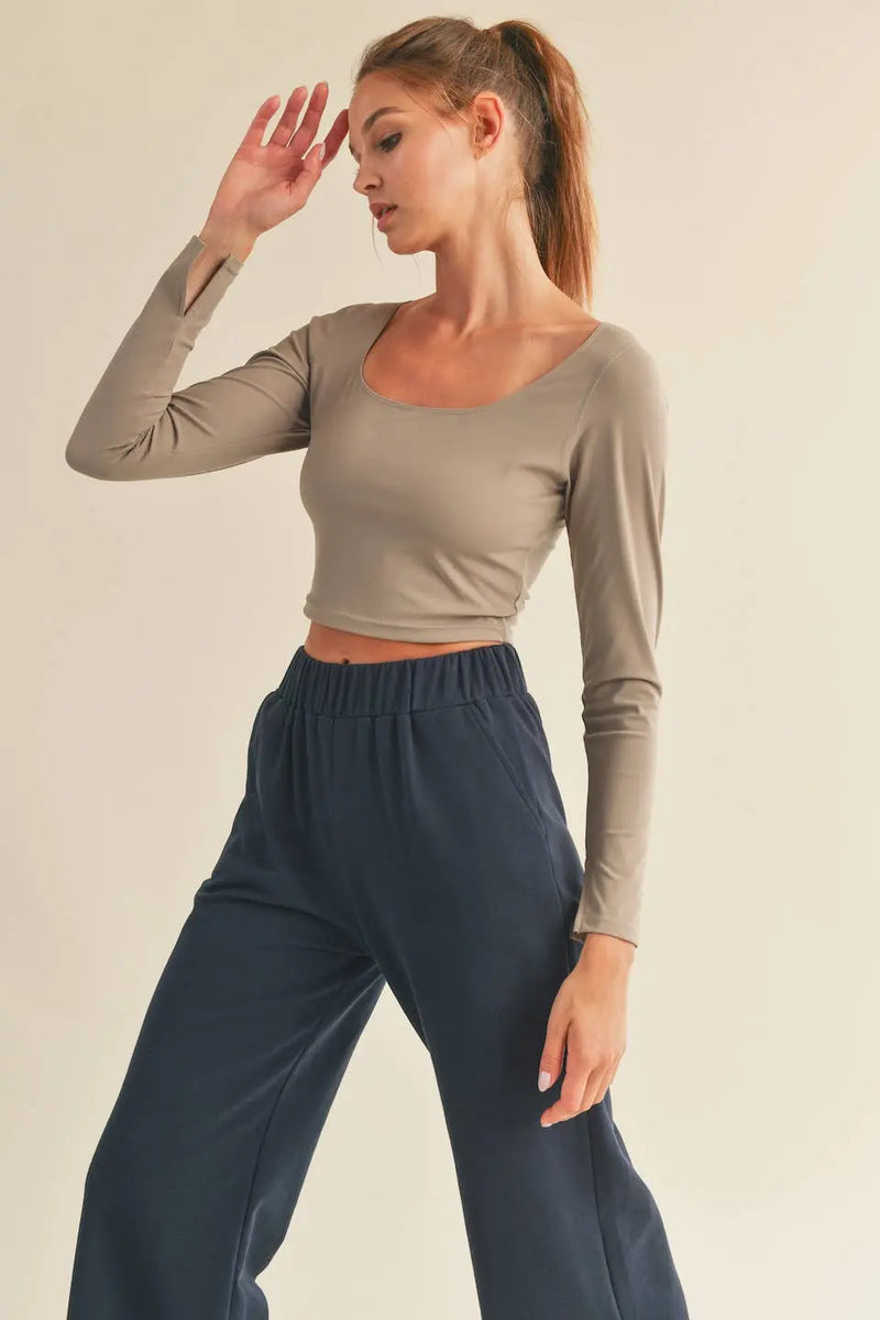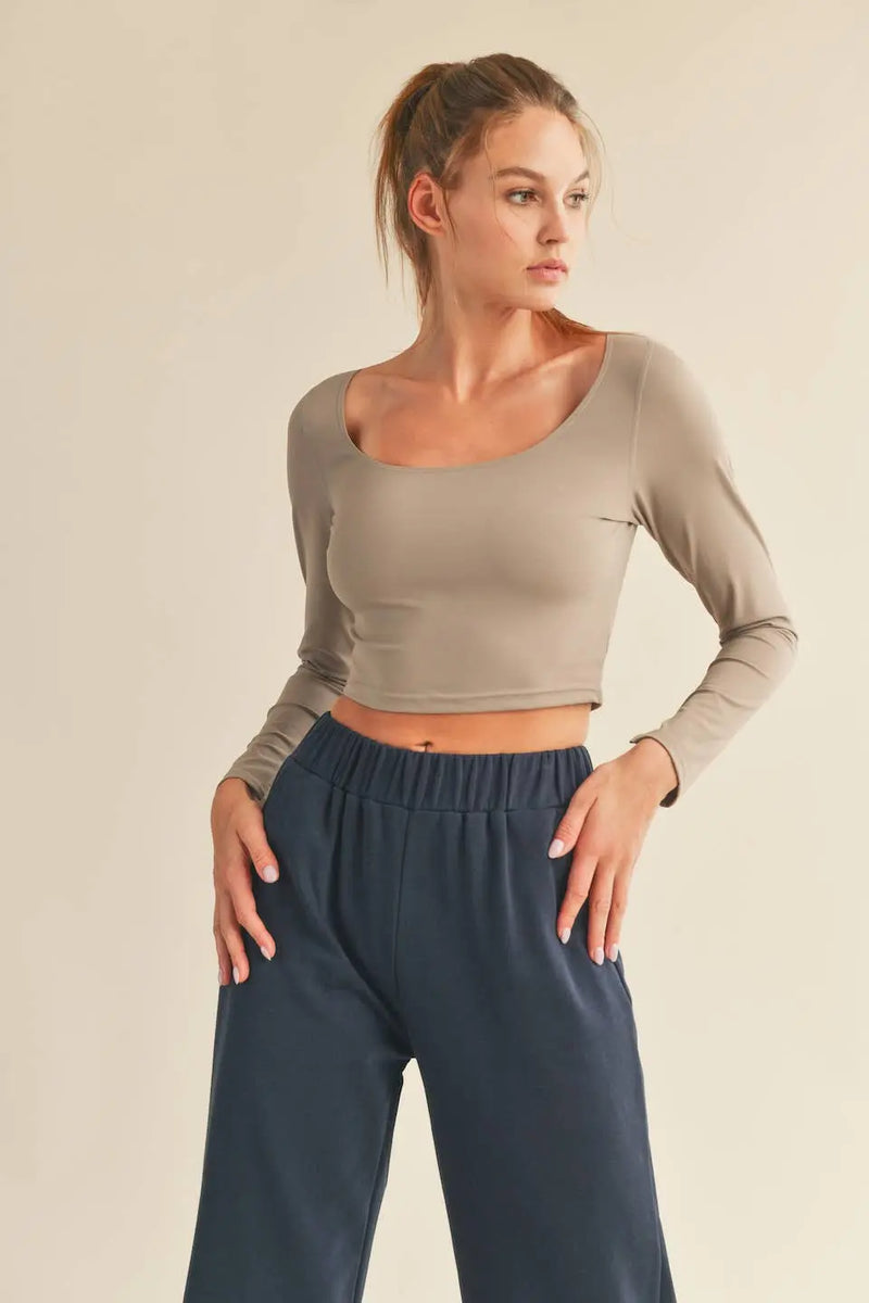 Experience the Comfort of the FITTED LONG SLEEVE SEAMLESS TOP-TAUPE