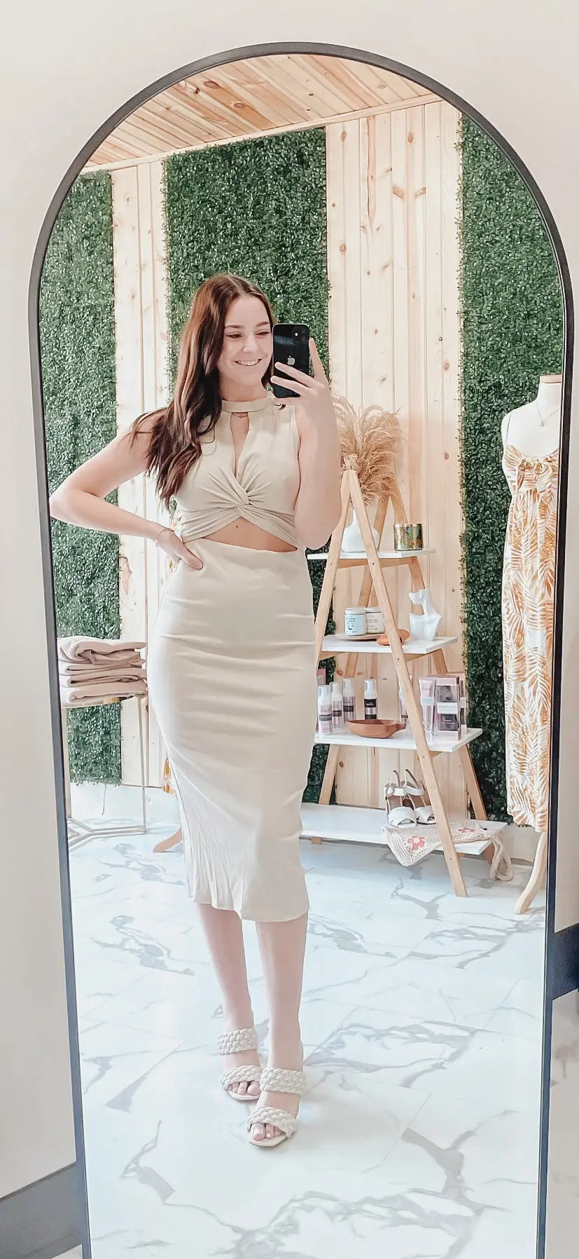 RIB CUT OUT MIDI DRESS - TAUPE: A Fashion Statement