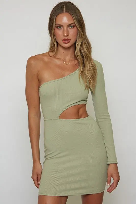 ONE SHOULDER CUT OUT MINI DRESS - OLIVE