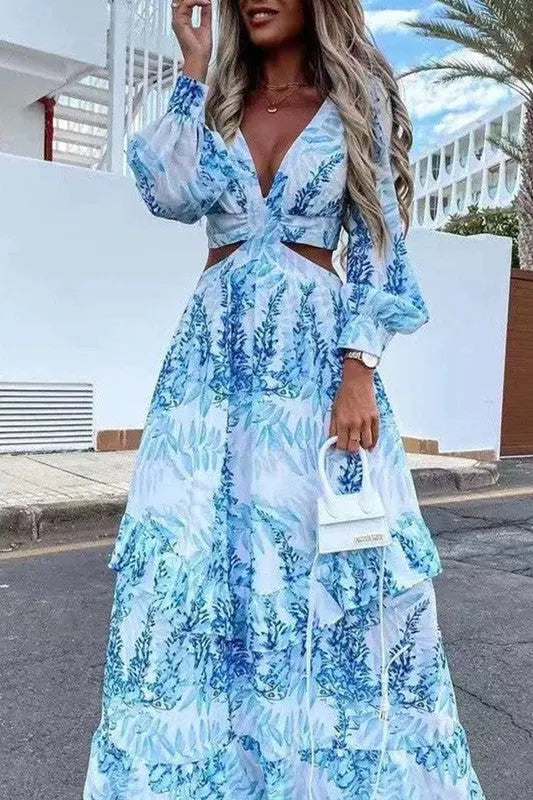 FLORAL PRINT CUT OUT MAXI DRESS-ORANGE