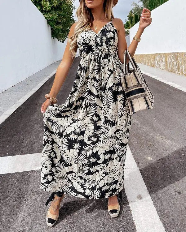JUNGLE FEVER MONSTERA PRINT MAXI DRESS