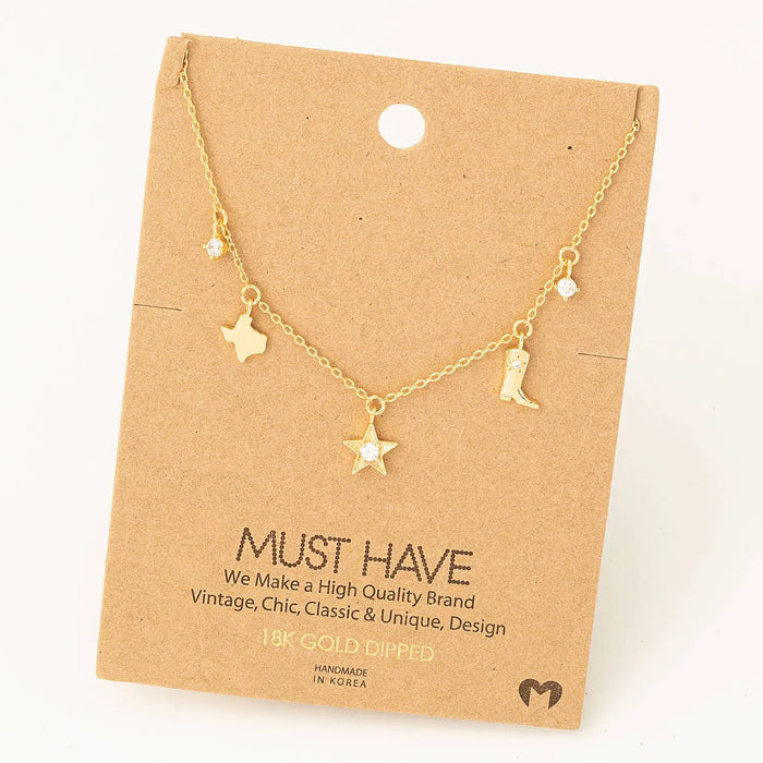 TEXAS STAR BOOTS NECKLACE-GOLD