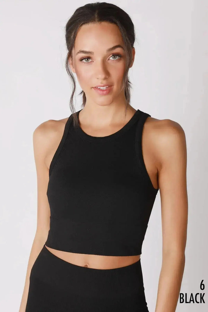 CHEVRON HIGH NECK CROP TOP-VINTAGE BLACK