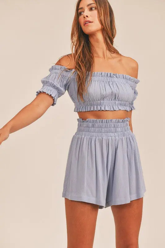 TAKE THE RISK CROP TOP TWO-PIECE SHORT SET - BLUE
