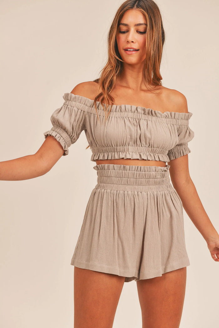 TAKE THE RISK CROP TOP TWO-PIECE SHORT SET - LIGHT OLIVE
