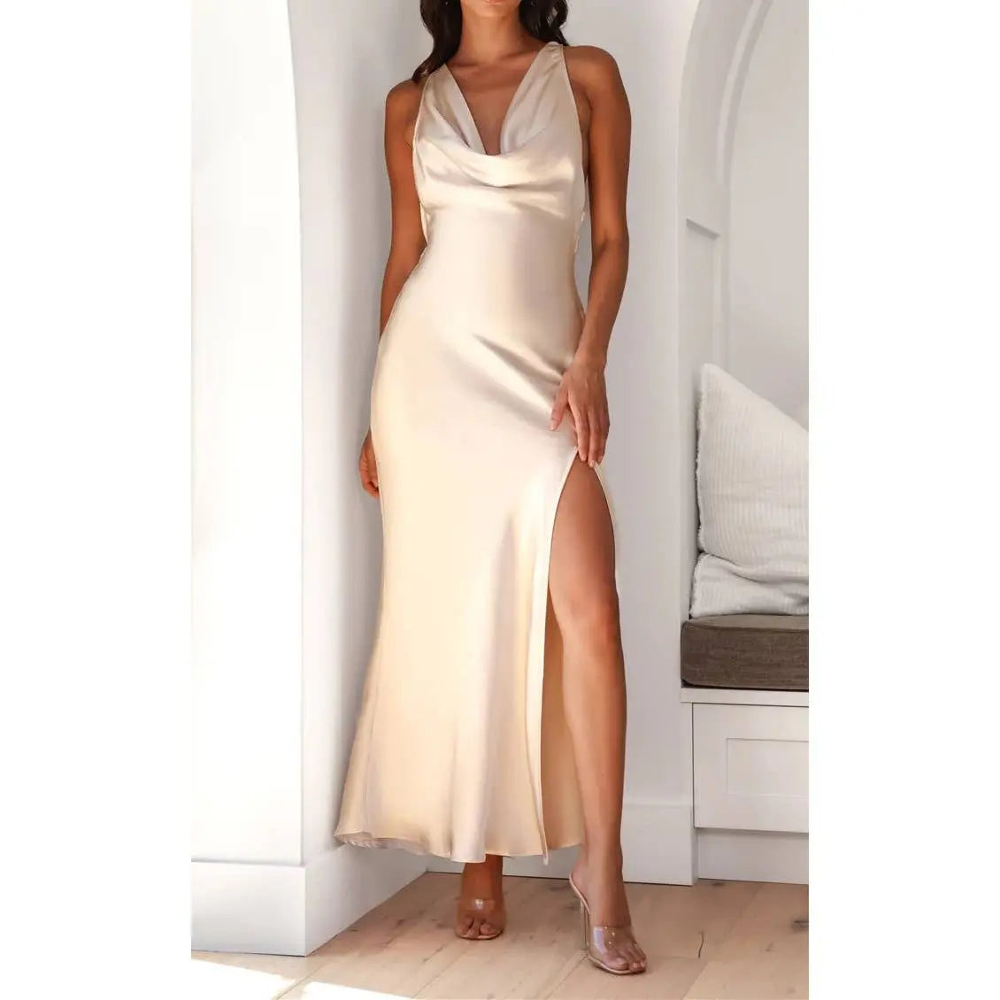 COWL NECK FLOWER EMBROIDERED MAXI DRESS CHAMPAGNE: Elegance and Style Combined