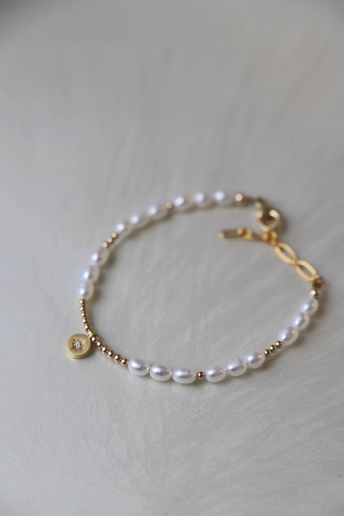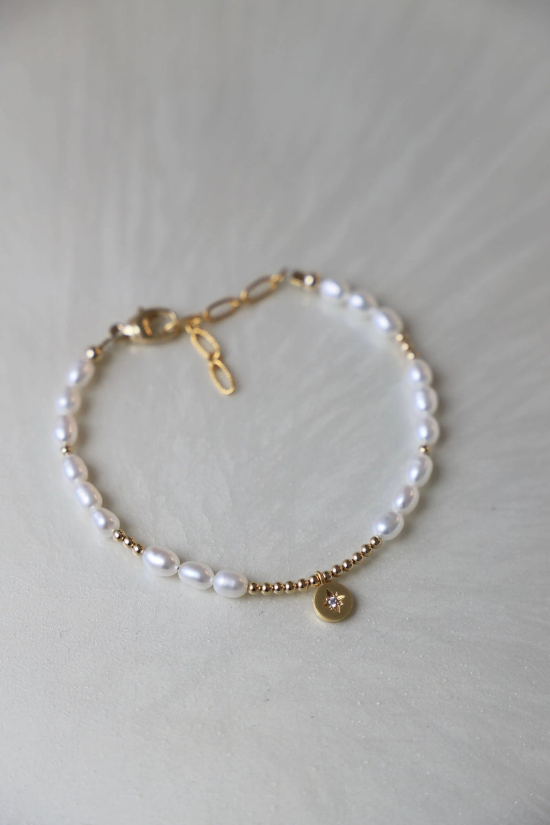 With intricate detailing and a delicate touch, our Pearl Beaded Star Medallion Bracelet is the epitome of elegance, perfect for any discerning individual. Crafted with lustrous freshwater pearls, a gold-plated star medallion, and accented with gold-filled beads, this bracelet exudes sophistication and charm. At a length of 6.5 inches with an additional 1 inch extender, it is a versatile and luxurious piece suitable for all ages.
